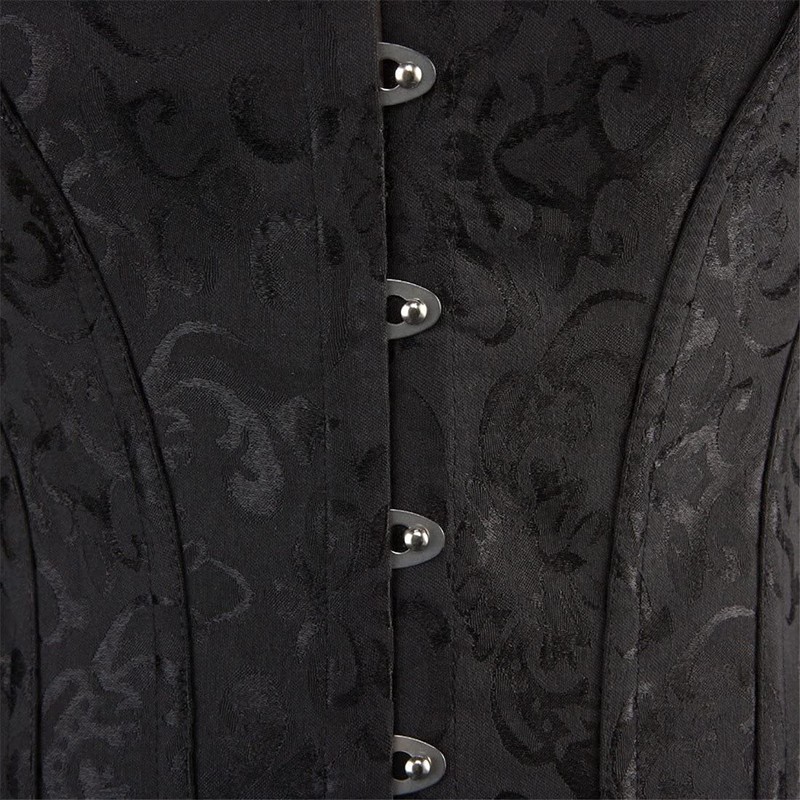 KSHUN Women's Sexy Satin Floral Boned Overbust Corset Top Lace up Back Underbust Body Shaper (Large, Black)