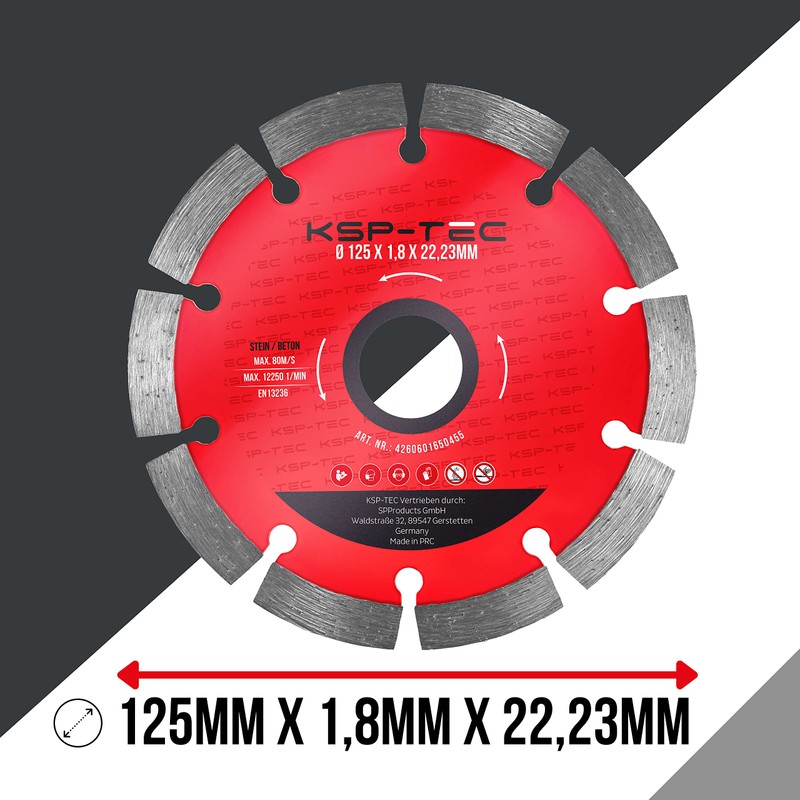 KSP-Tec® Cutting Disc 125 mm for Stone, Concrete, Masonry, Flex Disc for Angle Grinder and Flex 125 mm (125 mm, Diamond Cutting Disc)