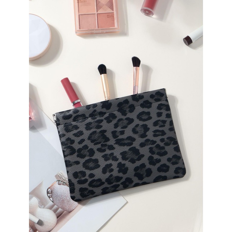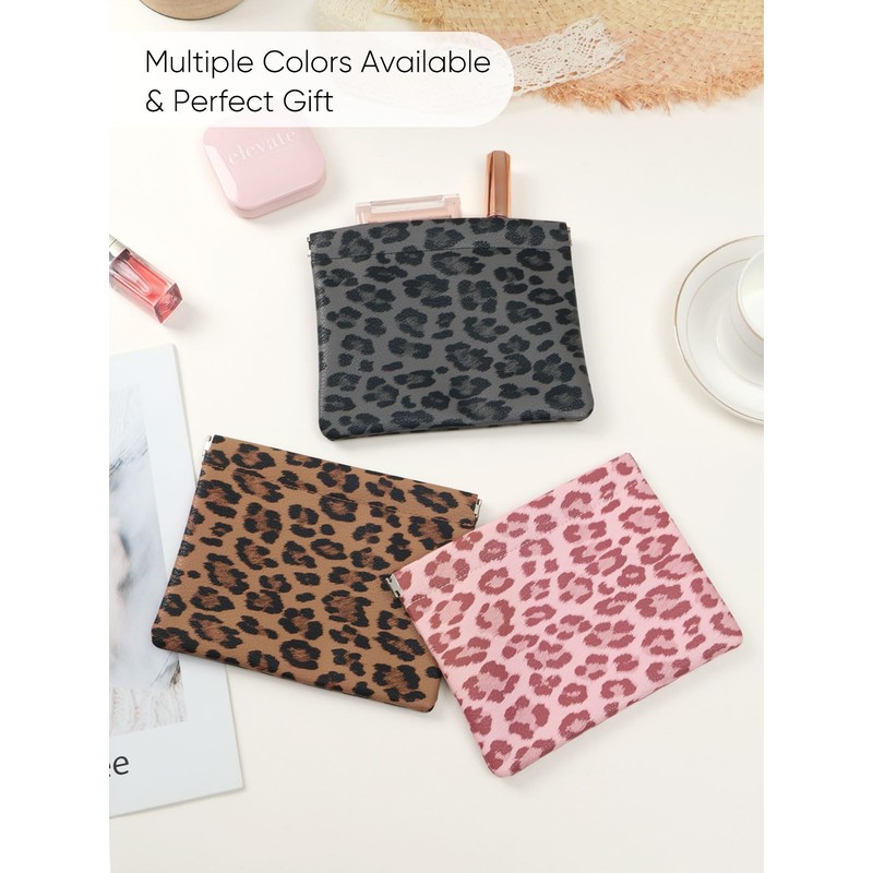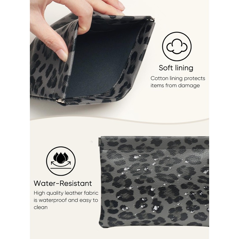 - Premium Craftsmanship: This classical cheetah cosmetic leather bag is made of PU leather material with no zipper.The makeup bag features a classic leather pattern with a waterproof lining.The bendable metal switch design automatically closes, making it both stylish and convenient