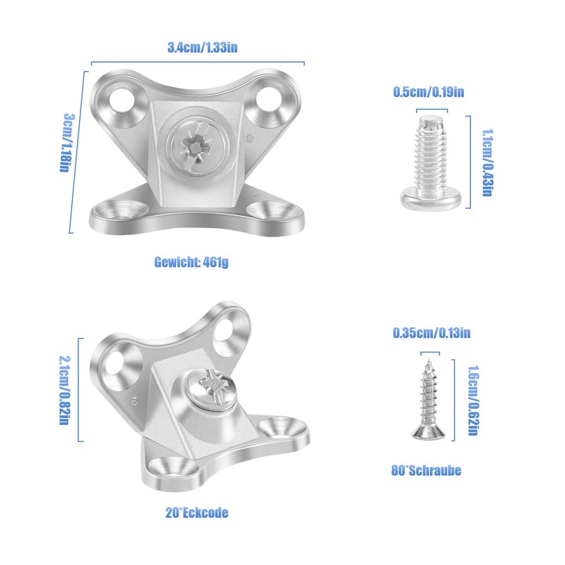 • Stable and durable: the angle bracket is made of zinc alloy with high load capacity, the screw is a high-strength stainless steel screw, rust resistant and not easy to deform, stable and durable for long term performance