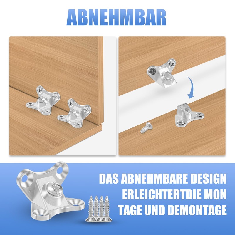 • Detachable design: a newly designed removable corner angle bracket, unlike ordinary corner angle brackets, you can simply loosen the screw in the middle to separate the two plates connected by the corner angle bracket without having to loosen all the screws and avoid damage to the furniture