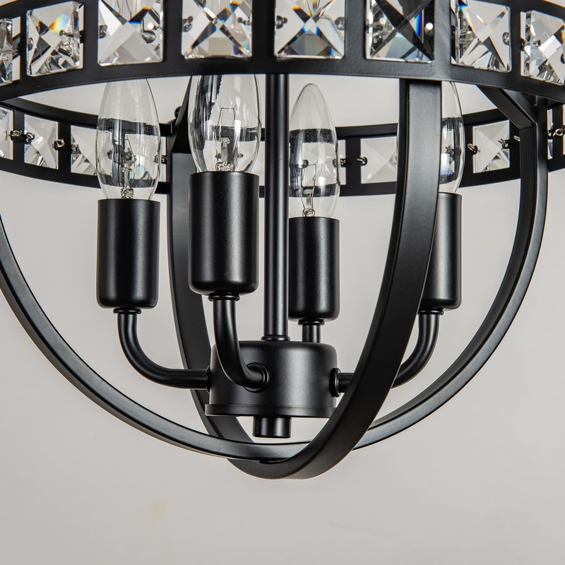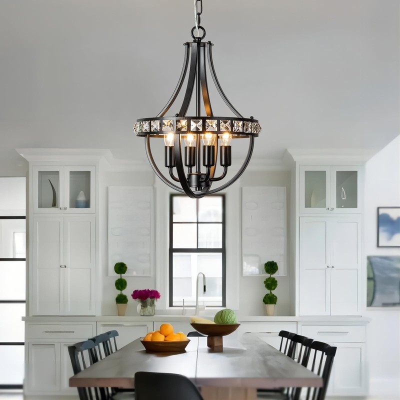 - 【Premium Material and Design】This farmhouse crystal chandelier is made of outstanding iron material, sturdy, corrosion-resistant, and durable. Our 4-light chandelier has a 15-39 inch adjustable chain, perfect for installation in rooms with high or low ceilings