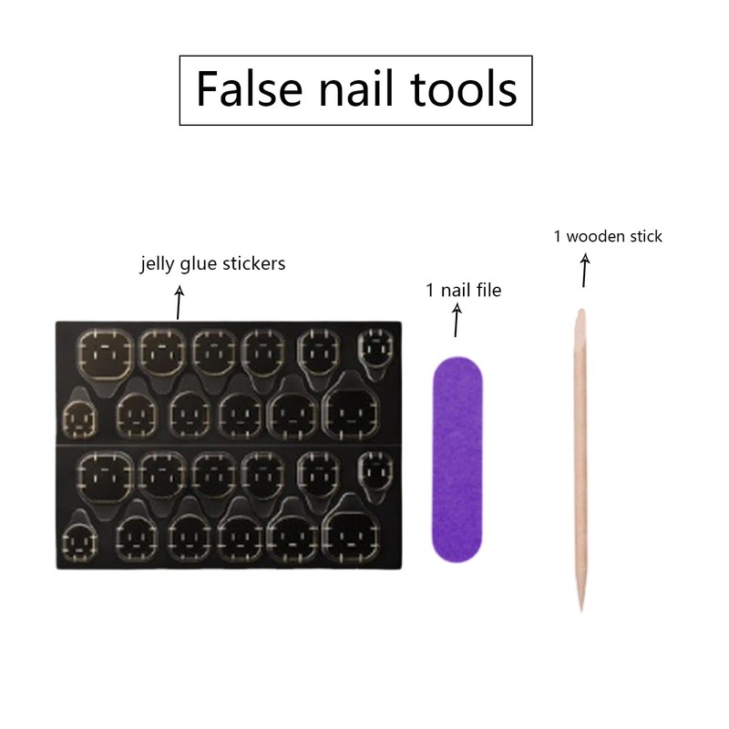 - French Tip Fake Nails: Package contains 24Pcs medium press on nails, jelly glue stickers, 1 nail file, 1 wooden stick. Different sizes of false nails can be reused, you can trim them to any length you want, no need to buy other things, you can get acrylic press on nails