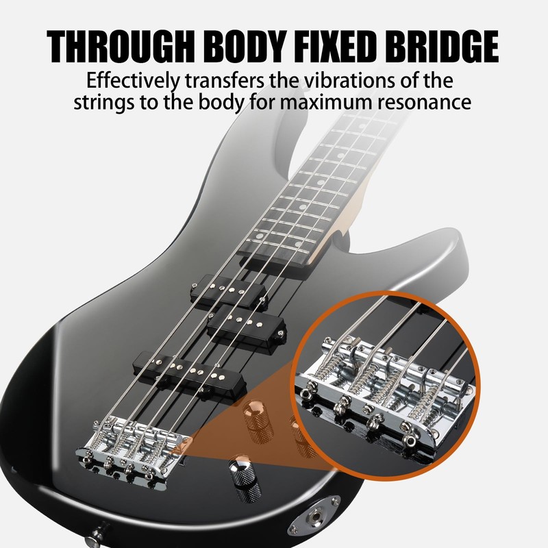 - FOR ALL SKILL LEVELS: Ready to use right out of the box, no assembly required. A perfect choice for musicians of all levels from beginner to experienced. This electric bass beginner kit has a beautiful appearance and perfect sound that is the best choices for holiday gift