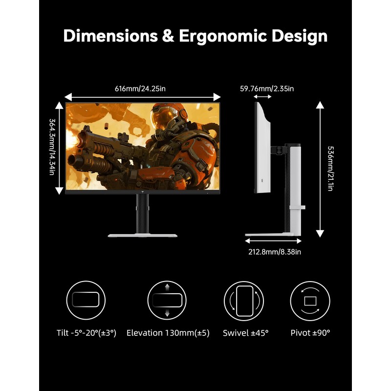 - Ergonomic & Modern Design: The monitor vertical supports ±90° pivot, -5°-20° tilt, ±45° swivel and 130mm height adjustment to best suit your needs.Vesa wall mount 100mm x 100mm allows you to mount your 1440p monitor in any environment.