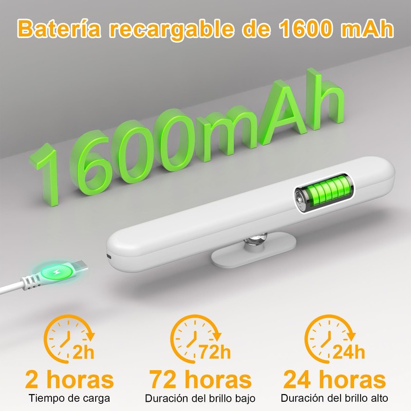 - Aplique Inalámbrico con Batería de Larga Duración---Luz para espejo tiene una batería recargable incorporada de 1600mAH, 3-4 horas de carga, 6 horas de duración de la batería. Satisfaga nuestras necesidades diarias de iluminación; Venimos con un cable de carga Type-C compatible con la barra de luz. (Nota: Para utilizarlo por primera vez es necesario cargarlo primero.)