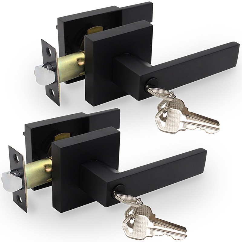 KUAGINZUHE Privacy Door Levers, 2 Pack Matte Black Door Handles Heavy Duty with Lock and Key,for Bedroom, Bathroom and Rooms,Reversible for Left and Right