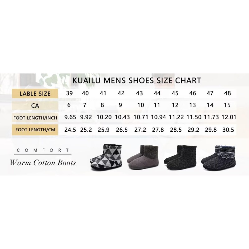 - DURABLE COMFY HOUSE SHOES: Mens slipper boots fine processing for the premium materials. Soft thick footbed and resilient upper or bottom. It is not easy occurring falling apart or distortion. Firmly fixed plush collar and liner guarantee a real warm. Pull on these nice ankle slippers and enjoy your comfortable household time.