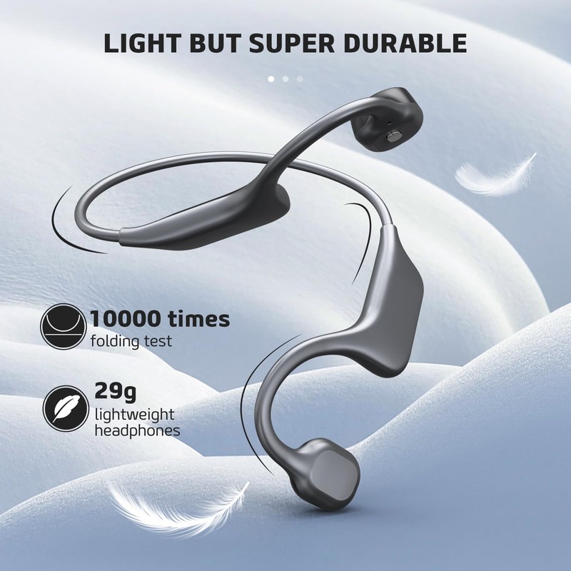 - Unrestricted Experience:Open Ear Heaphones designed with lightweight materials, this Bone Conduction Headphones fit comfortably around your head, offering minimal constraints. Whether you're exercising outdoors or working in the office, they are your ideal companion. Plus, the open-ear design around the ears ensures long-term wearability.