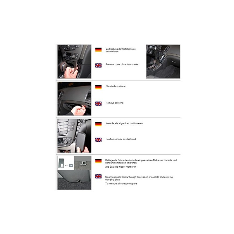KUDA Phone and navigation console suitable for the following models: Opel Insignia A from 11/08 and from 2013 KUDA phone and satnav system base mount compatible with the following models: Opel Insignia A from 11/08 and from 2013 Subject to prior change and our general terms and conditions. Please Note: This item solely contains the mount without any other accessories. Any holders, cradles or devices will have to be purchased separately!