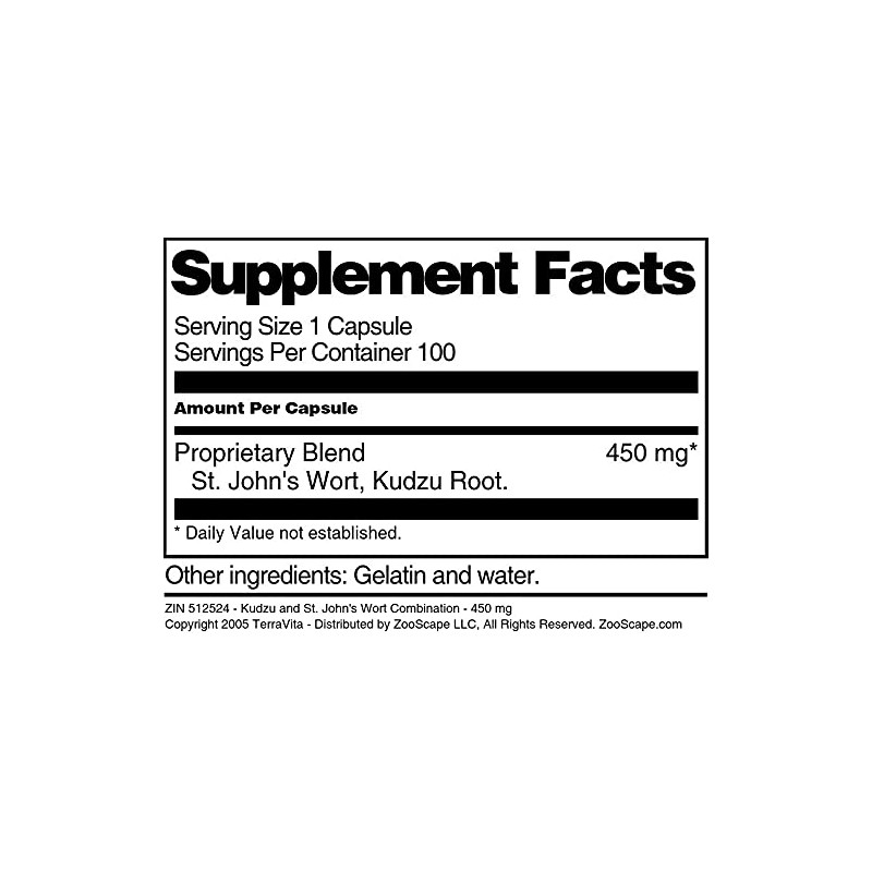 - Kudzu and St. John's Wort Combination - 450 mg (100 capsules, ZIN: 512524)