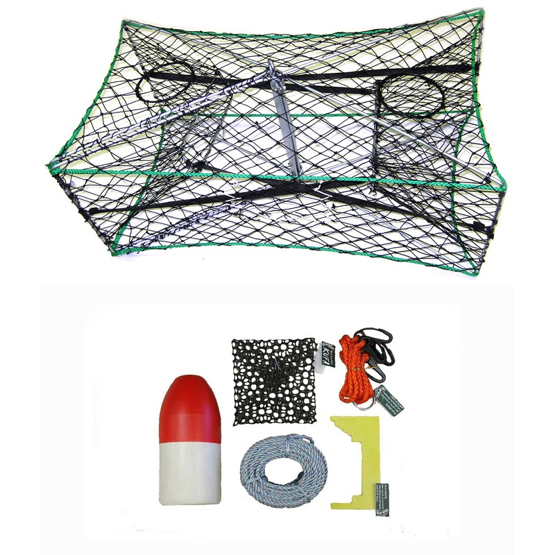 KUFA Galvanized Foldable Crab Trap & Accessory Kit (100' Lead CoreRope, Clipper,Harness,Bait Case & 11" Red/White Float) S33+CAC1