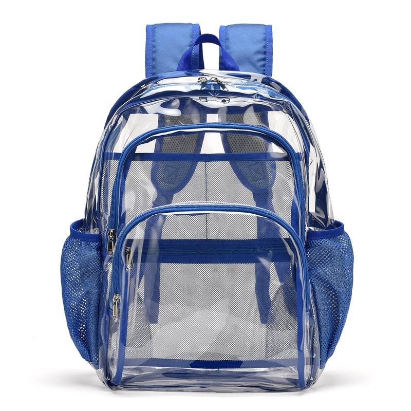 - Clear backpack heavy duty:KUI WAN clear backpack bag is made of 0.8mm heavy-duty transparent PVC materials, and all seams are reinforced with double stitches which makes them avoid tearing and hold heavy loads easily. Transparent large clear-view allows quick inspection for safety purpose