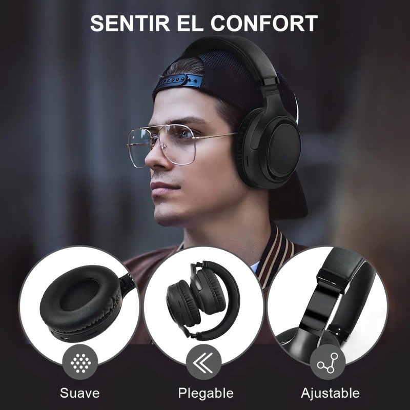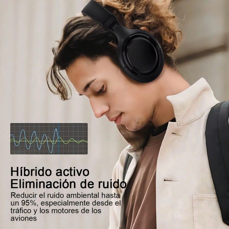 Kuiiyer Auriculares Bluetooth Auriculares inalámbricos Conexión ultrarrápida y estable a 10 metros Cancelación de ruido adaptativa Controladores de 40 mm 65 horas de reproducción Negro