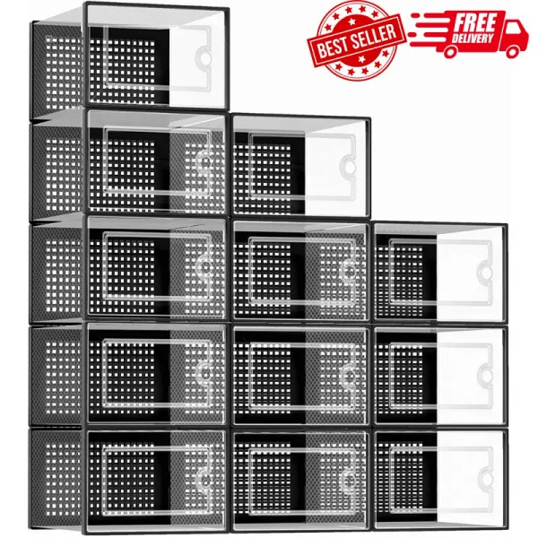 - Extra Large Capacity-13.2”L*10.1”W*6.42”H: The upgraded large shoe box is wider and higher. It fits women’s shoes up to size 12(US) and men’s shoes up to size 11(US), which is suitable for many types of shoes such as boots, leisure, sneakers and high heels.