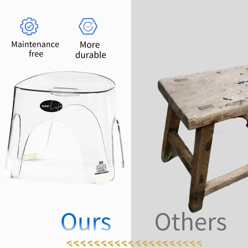 - Aesthetic Appeal:The crystal-clear acrylic material offers exceptional transparency and display quality, enhancing the visual appeal of any room. This acrylic step stool / acrylic shower stool seamlessly blends into various interior designs, whether placed in the bathroom, kitchen, or living area, adding a touch of modern elegance
