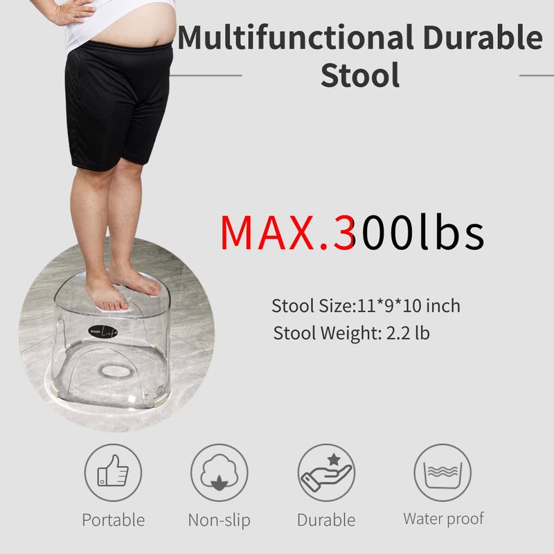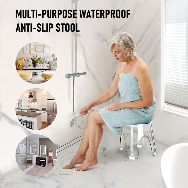 - Durable & Waterproof Construction:Crafted from premium acrylic, this shower stool is designed to remain robust and stable even in wet environments. With a sturdy structure capable of supporting up to 300 lbs, it ensures safe use for everyone. The thick rubber non-slip pads provide secure grip on any surface, ensuring longevity