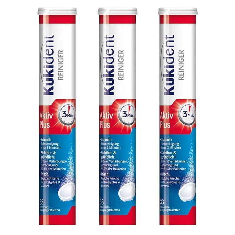 - The Kukident Aktiv Plus tabs remove 99.9% of bacteria that can cause gum inflammation, even where the toothbrush cannot reach.