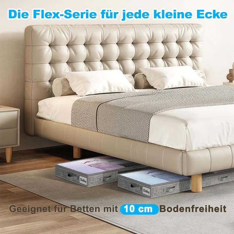 - Soft bag with transparent lid: The Flex series is characterised by a soft, flexible construction without inner structure organiser wardrobe, organiser system, wardrobe, shoe organiser, underbed storage, shoe organiser space-saving, bedding organiser, storage bag for duvets, bed box storage, storage bag with zip closure. The particularly lightweight design of this underbed box can be easily stored and folded up to save space when not in use. The transparent lid allows a quick view of the contents at any time - for easy and quick access.