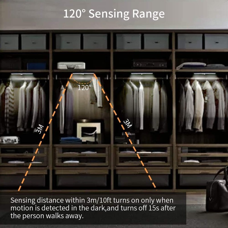 • Cabinet LED Light, Sensor LED light 80lm: the light will light up when you get within 3 meter of it and will go out 15 seconds after you walk out of its sensing range