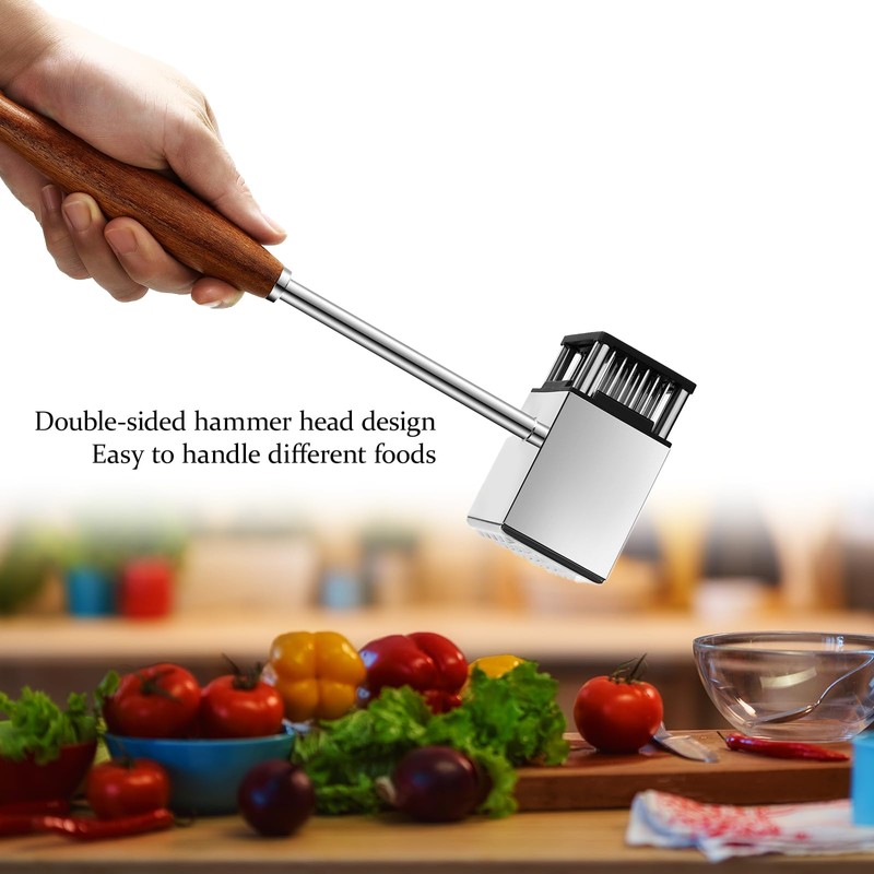 - 36 Ultra-Sharp Needle Blades: The double-sided stainless steel hammer is equipped with 36 ultra-sharp needle blades that quickly and effectively penetrate meat fibers, making the meat more tender and juicy.