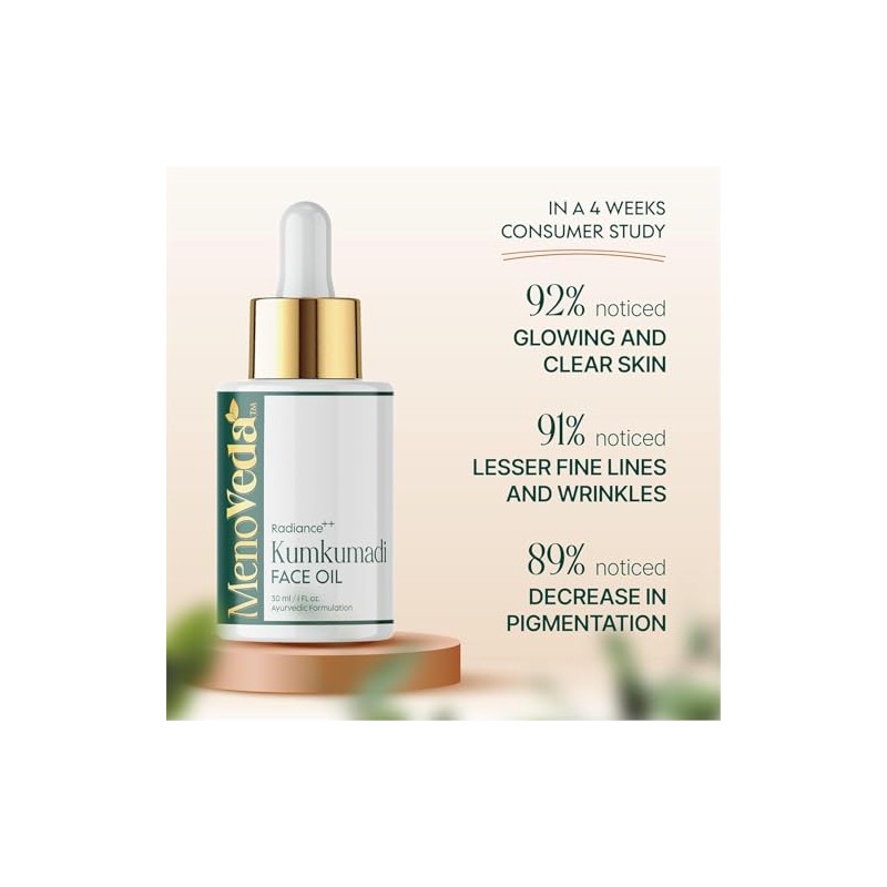 Kum-kumadi Face oil For glowing skin | Reduces Fine Lines & Wrinkles | Improves Elasticity | Antioxidant-Rich Anti-Ageing Formulation for Dark Spots, UnEven Skin Tone, Eye Area - 30 mlll
