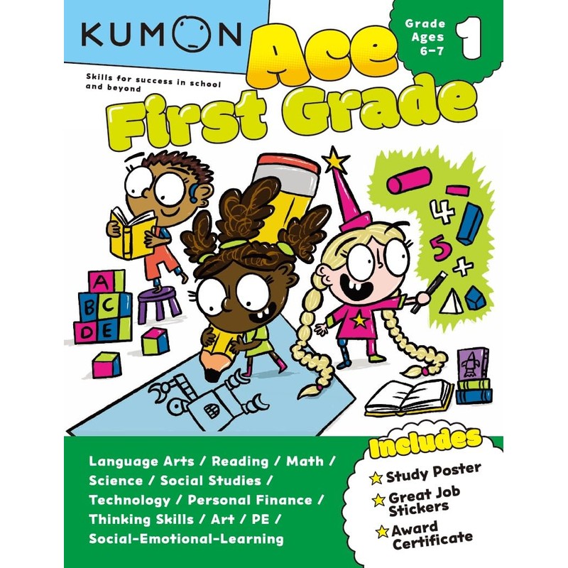 Kumon Ace First Grade-Includes Study Poster, Stickers and Award Certificate