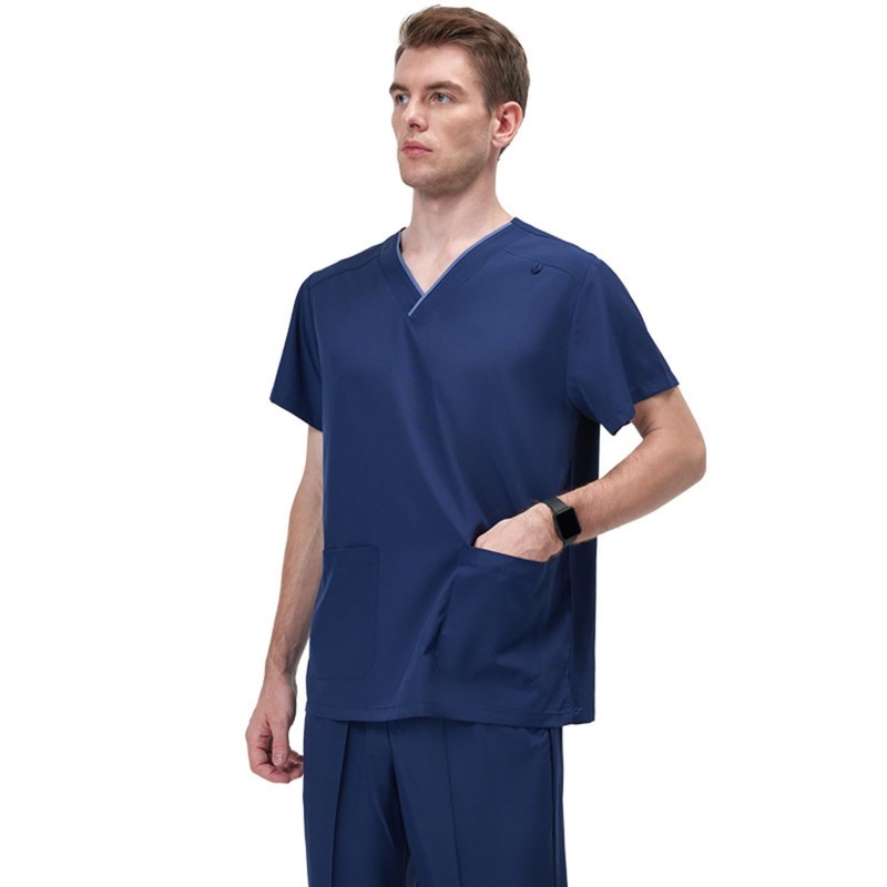 KUMUROETA Essentials Scrubs for Men,V-Neck Operating Room Uniforms,Comfortable,Loose Fit Top and Pants Set with Pockets,Doctor,Nurse,Dentist,Dark Blue