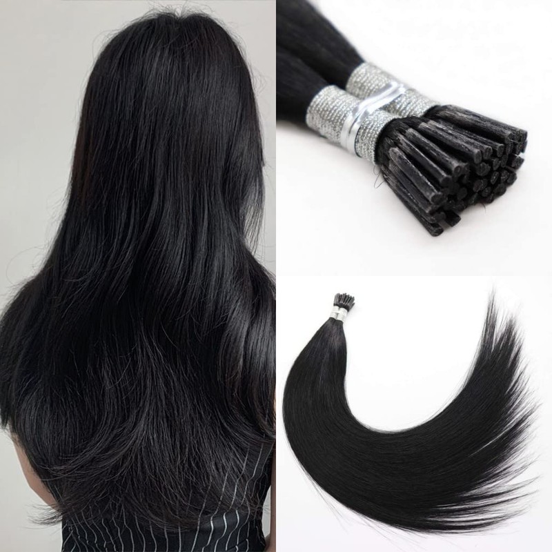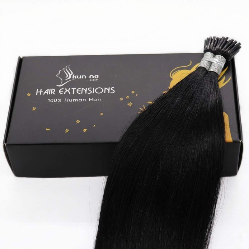 Kun na Pre Bonded I Tip Stick Tip Remy Real Human Hair Extensions Straight - 50 Strands - 50g/pack Virgin Hair Extension - 20" Color #1