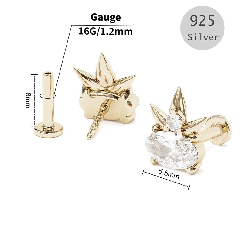 KUNASSHIR 16G Unicorn Cartilage Studs Internally Threaded Labret Piercings 925 Silver Helix Piercing Jewellery Tragus Conch Piercings Flat Back Earring