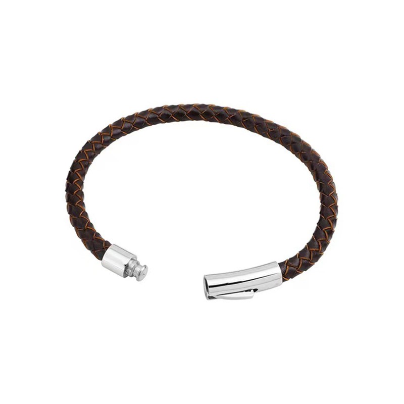 KunBead Braided Mens Brown Leather Bracelets for Women with Stainless Steel Clasp Cuff Bangle Birthday Bracelet