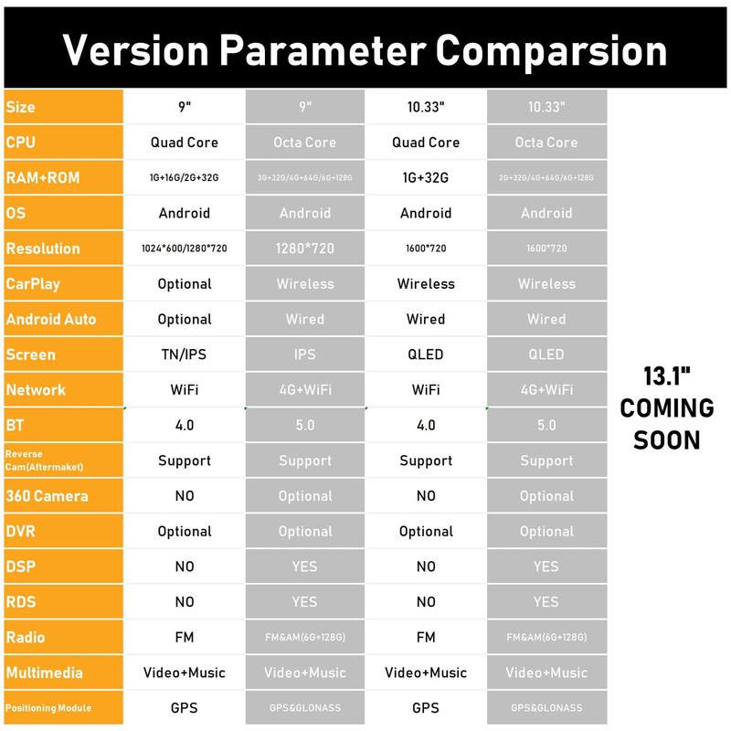 1.If you want CarPlay or Android Auto function, please choose the correct options, this option contains NO built-in CarPlay or Android Auto;