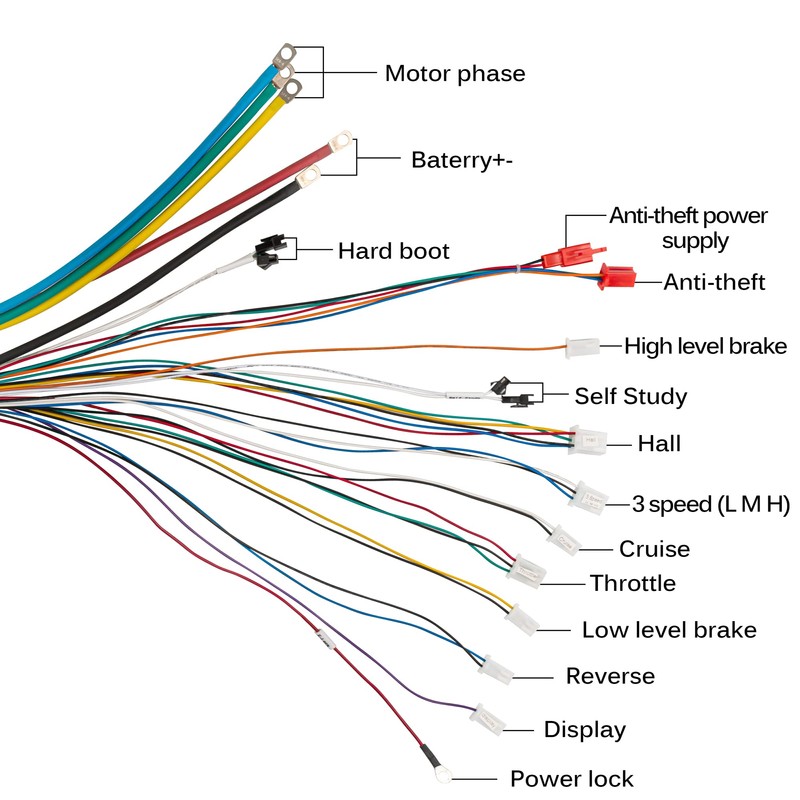 - Multi-function controller, hard boot, anti-theft, three-speed, cruise, reverse, self-study and display;