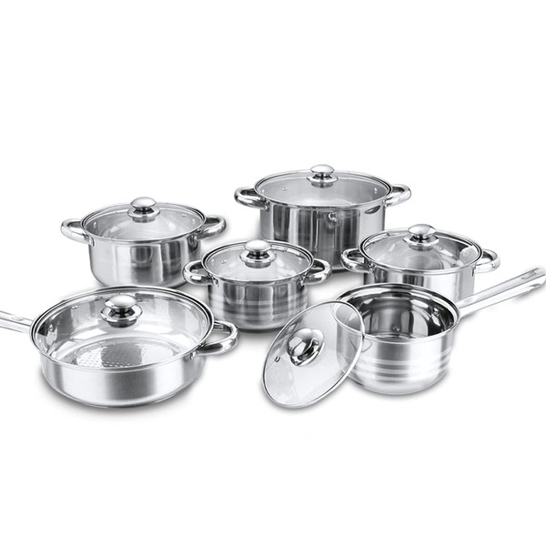 - [DISHWASHER SAFE] - Built to last, this beautiful 12-piece stainless steel set is dishwasher-safe for easy cleanup and compatible with induction stovetops.