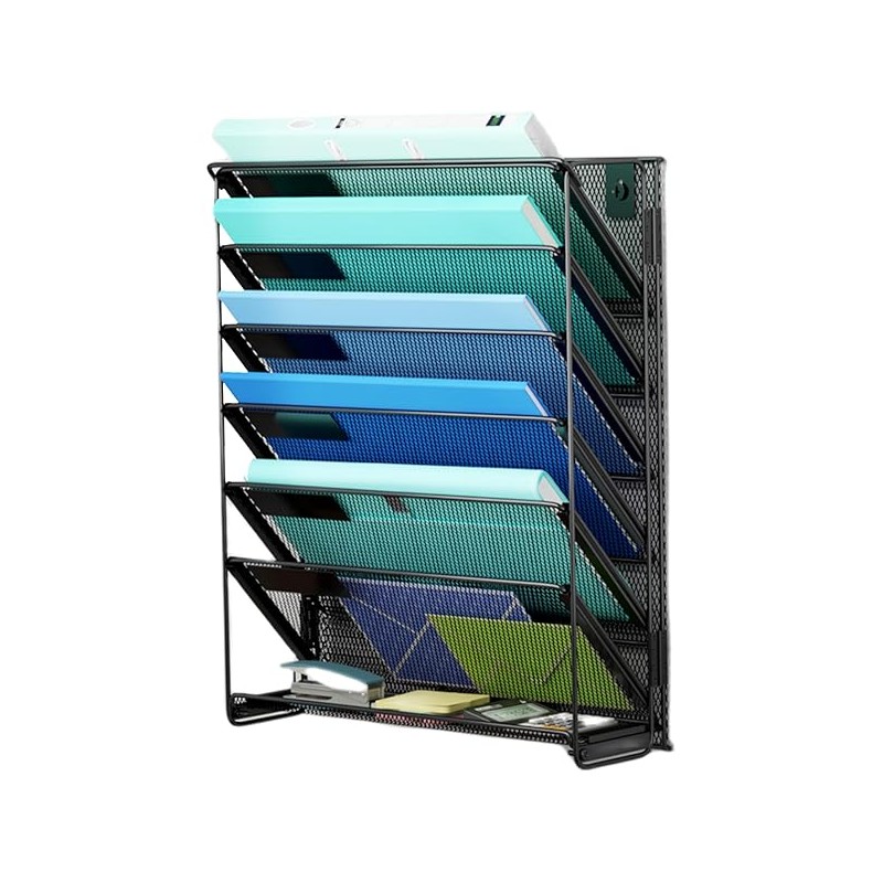 Kuntine.B 7-Tier Hanging File Organizer Vertical Wall File Organizer Wall File Holder, Mesh Magazine Rack Mail Document Organizer for Office School Home (Black, 1 Pack)