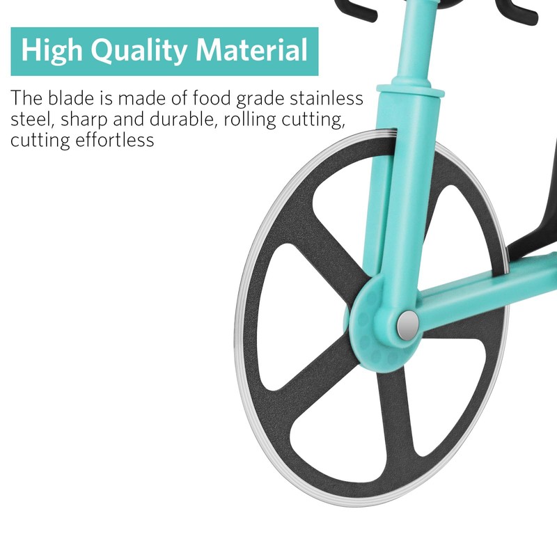 KUONIIY Pizza Cutter, Bicycle Pizza Cutter, Dual Stainless Steel, Super Sharp Blades Slicer with Non-Stick Coating, Blue