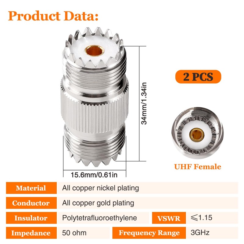 - Package Includes: 2 PCS UHF SO239 Female to SO239 Female Connector.