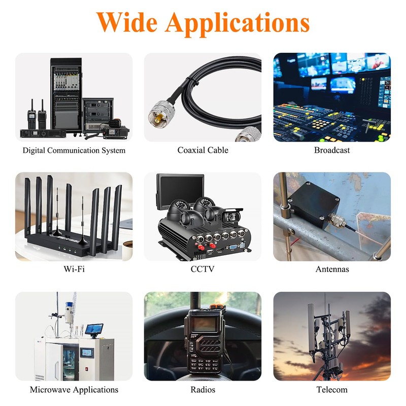 - Wide Applications: Working for RF Applications, Antennas, Wireless LAN Devices , Coaxial Cable, Wi-Fi Radios External Antenna, SWR Meter, Broadcast, CB Radio Antenna, CCTV, Microwave Applications and Digital Communication System etc.