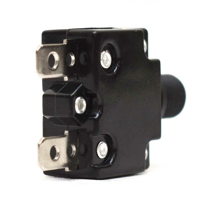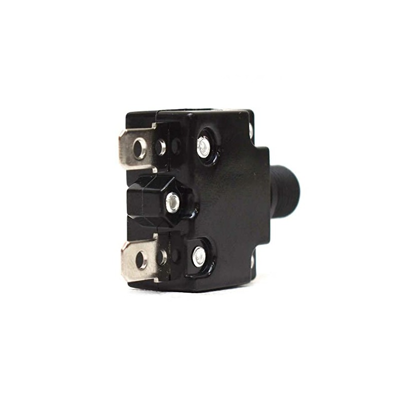 Constructed out of black plastic, this circuit breaker measures approximately 5/8" W x 1 1/8" H x 1 7/8" D overall. Rated for 15 amps, 125/250 VAC, 32 VDC, and 50/60 Hz. Hosts (2) spade male connections.