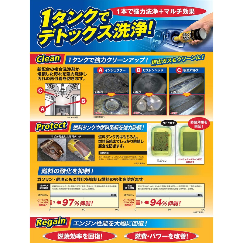 - Powerful cleaning of fuel system stains! In addition, the multi-effects of the engine will greatly restore its engine performance through preventing fuel oxidation and rusting of the fuel system