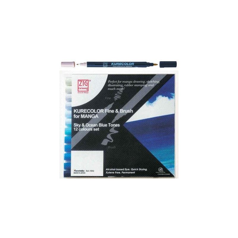 - ZIG Art & Graphic Twin RB+F is a dual tipped marker with a fine tip for details and a bristle brush tip for larger coverage