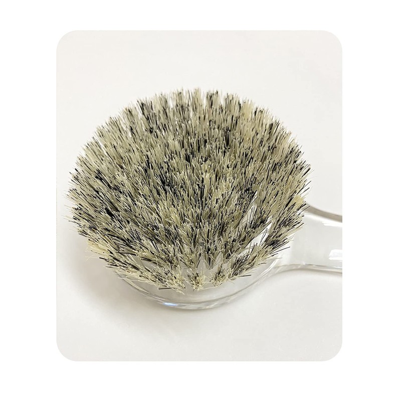 - Crystal type with transparent handle for a clean feel. Unlike wood, it is mildew and stain resistant. Skin-friendly natural pork hair