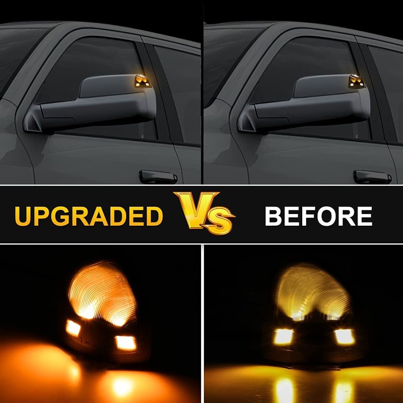 These lights make your truck's turn signals shine brighter, increase the visibility of your trailer lights and are easily noticed by other vehicles on the road to ensure safe driving. Smooth and 100% waterproof towing mirror light surface. The hard and durable ABS plastic effectively protects the turn signals from minor impacts and will not fade with extended use.