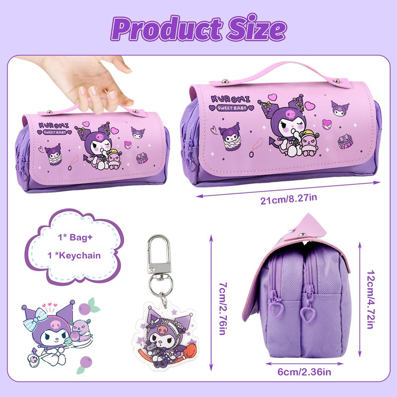 1 x Pencil Case( with 2 main bags and 1 compartment.) + 1x Cute keyring