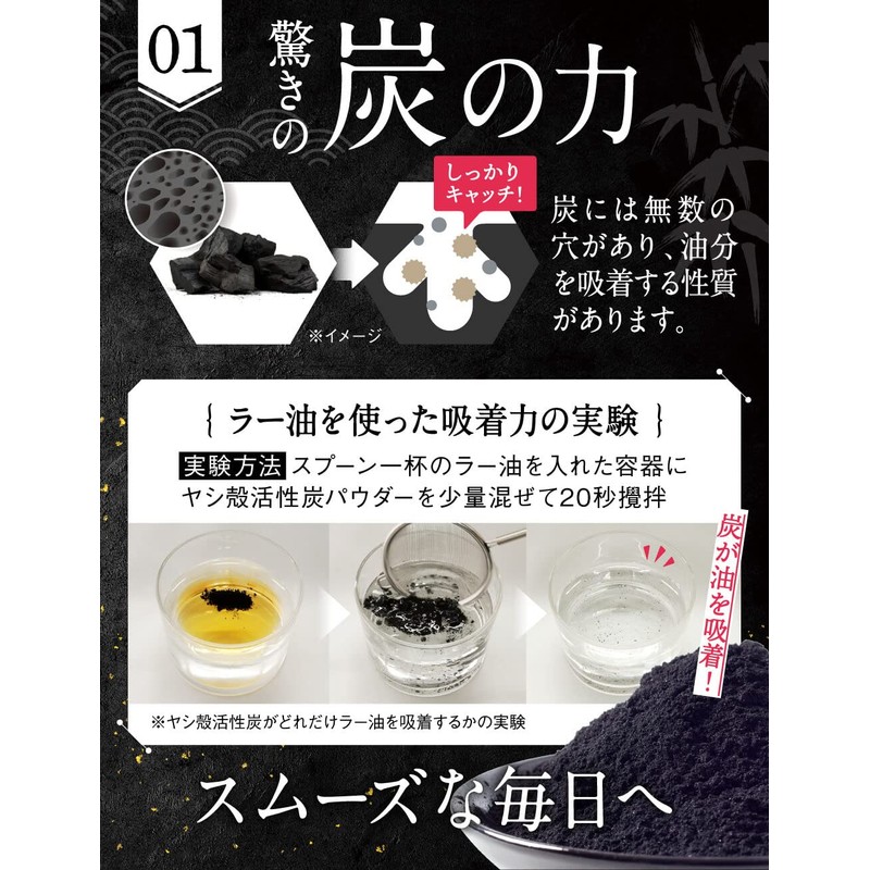 - 【炭の力】ヤシ殻活性炭、赤松妙炭、鎌倉珪竹炭、竹炭、それぞれの特徴を持つ炭(チャコール)を理想的なバランスで配合。炭には無数の穴があり、油分を吸着する性質があり、スムーズな毎日へ導きます。