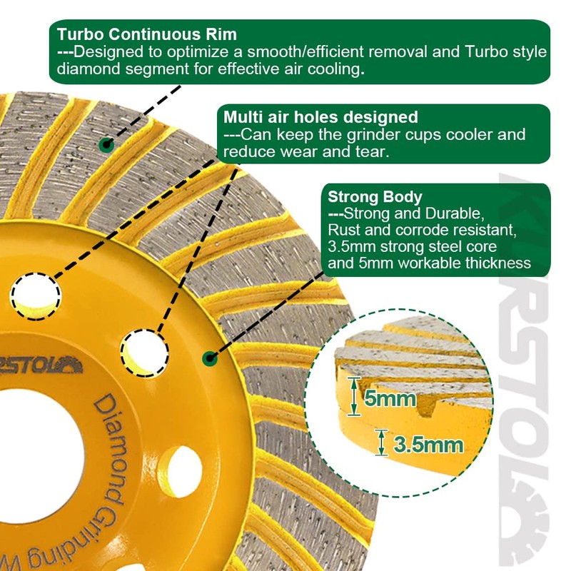 KURSTOL Diamond Grinding Cup Wheel - 4.5"/115mm Turbo Row Angle Grinder Cup W...