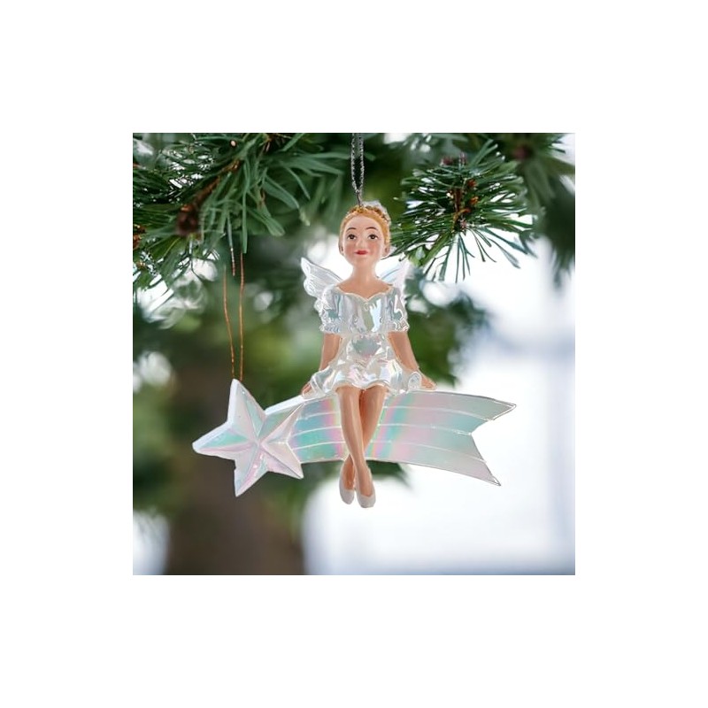 Kurt Adler 4" Shooting Star Fairy Ornament, Iridescent Resin, Fantasy Christmas Decor, E0938