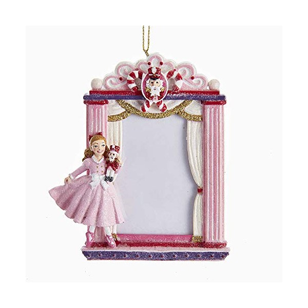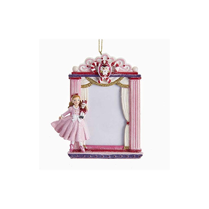 Clara Nutcracker Suite Picture Frame Ornament.Ornament Measures Approx 4.5-inches tall and Holds Smaller Mini Sized Photo. Material: Resin. By Kurt Adler