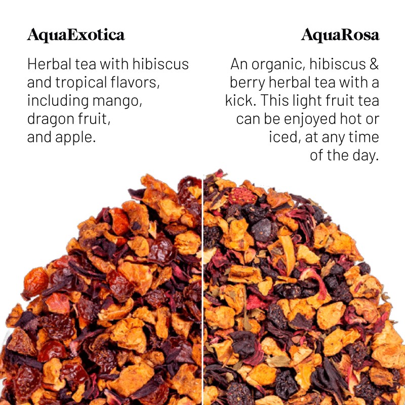- ✅ AQUAEXOTICA: AquaExotica bio ist eine erfrischende und köstliche Mischung aus Hibiskusblüten und exotischen Aromen. AquaExotica eigent sich ideal für warme Sommertage und wird Sie mit seinen zarten Rosé Farbe begeistern. Dieser Aufguss vereint die exotische Süße von Mango mit der zitrusartigen Frische der Drachenfrucht. Die herben, leicht säuerlichen Noten von Hibiskus wecken den Gaumen und werden durch fruchtig-süße Aromen von Apfel harmonisch abgerundet.