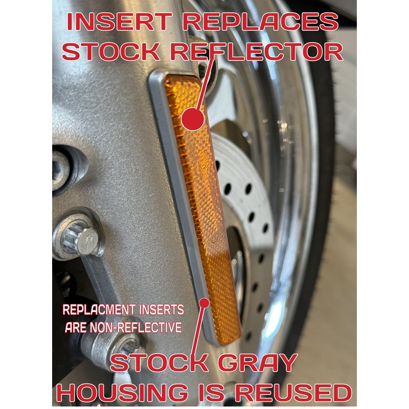 - Replaces the stock reflector. Grey reflector housing is reused.